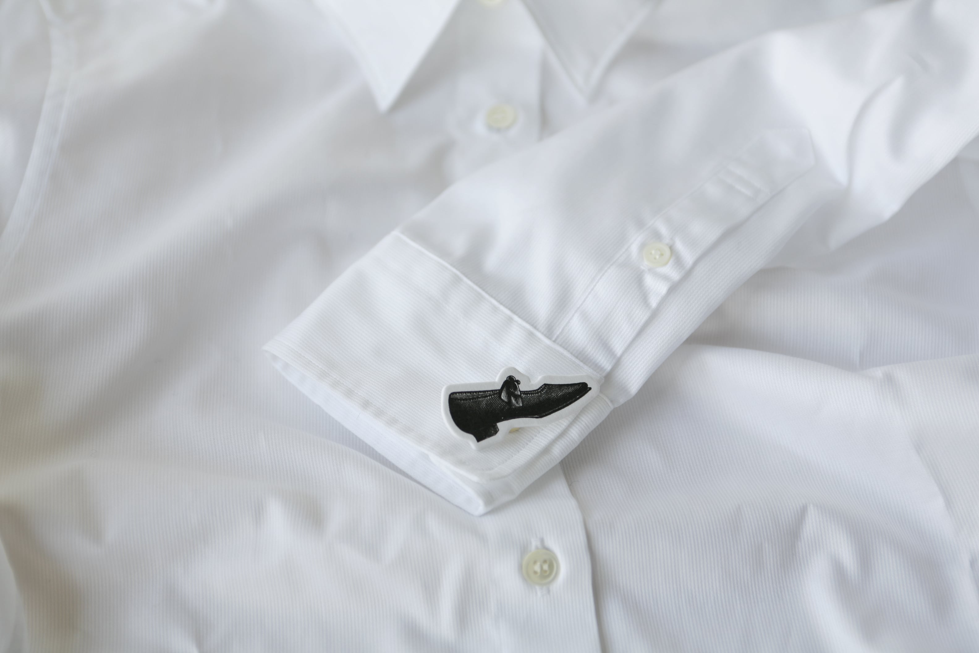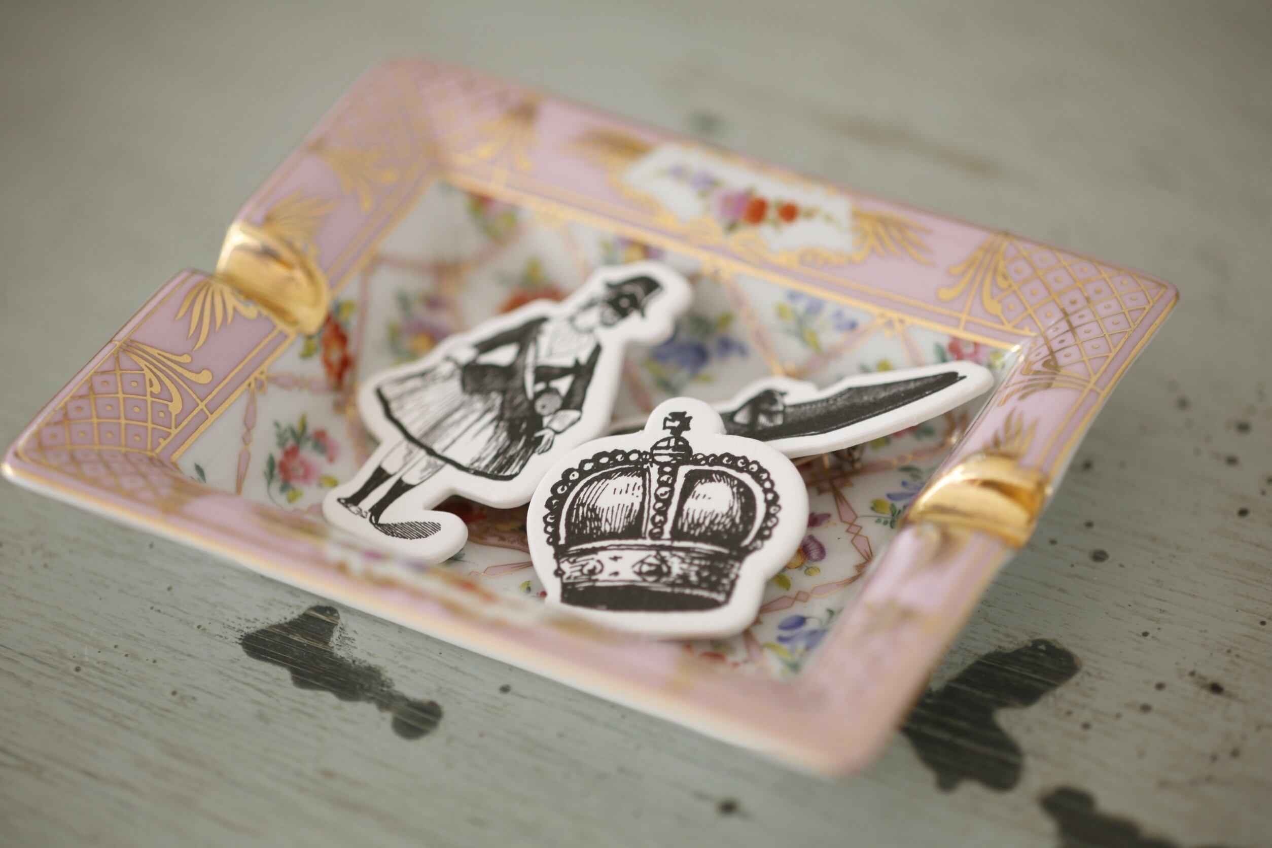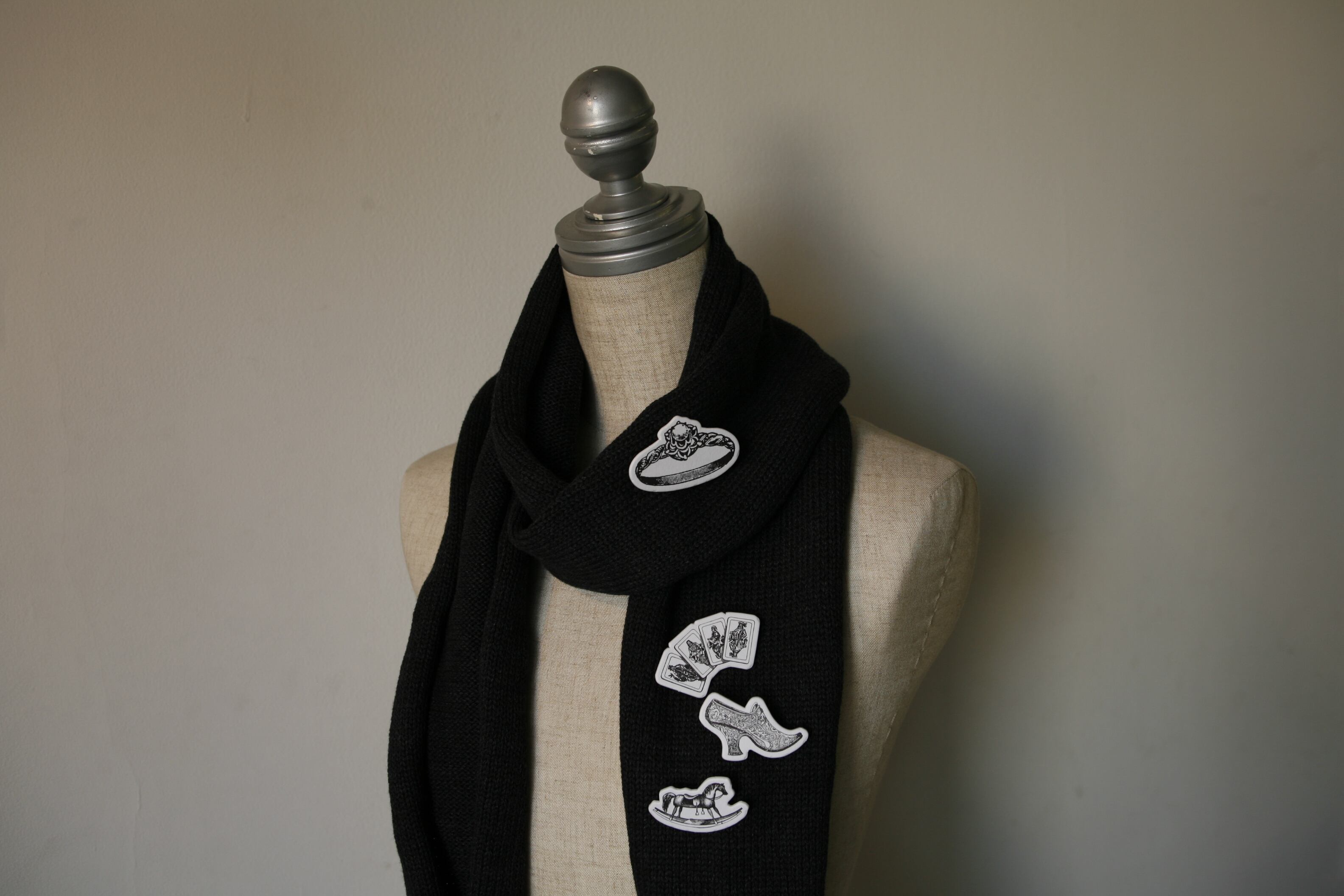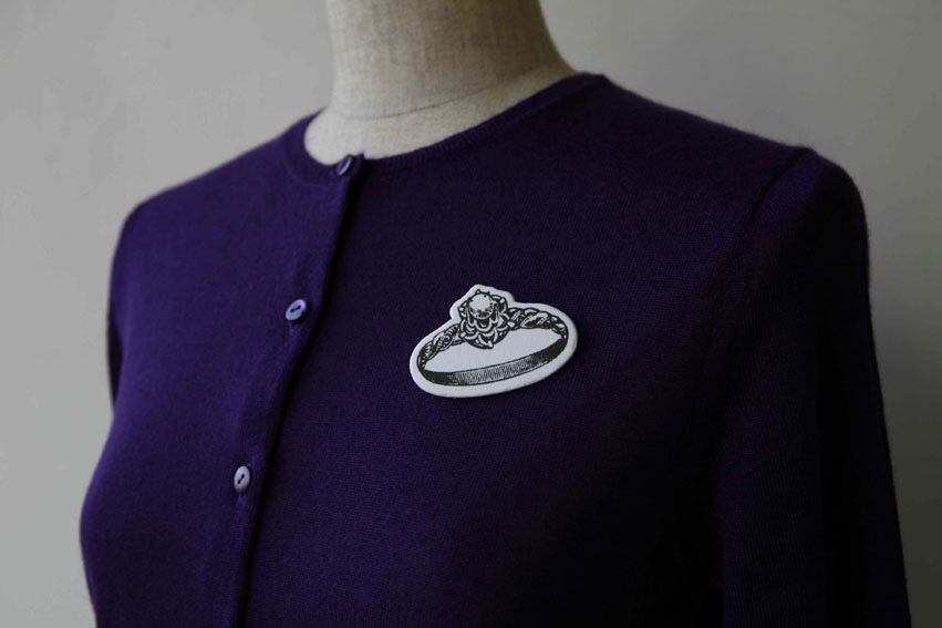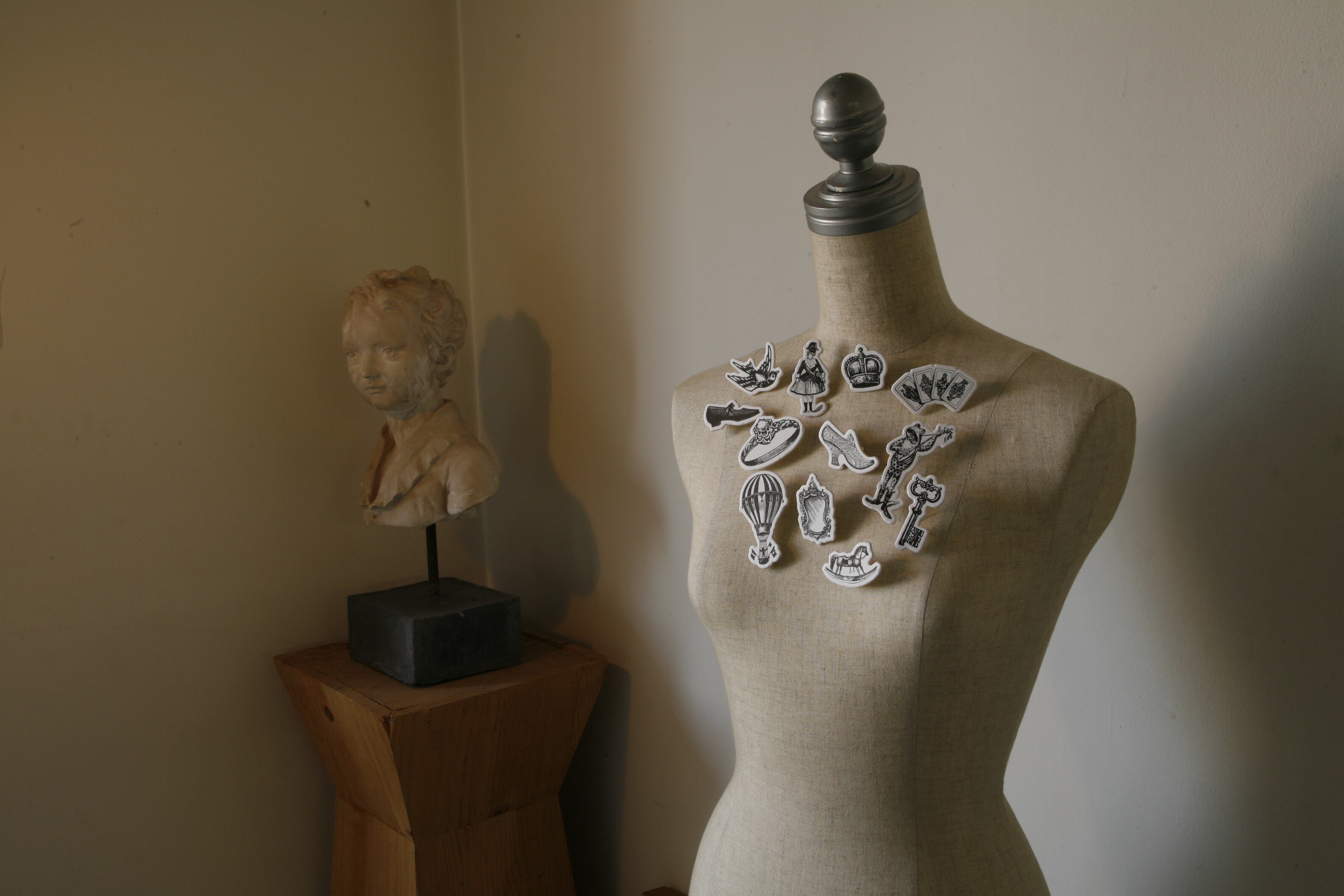 ブローチは厚さ1.5mmの堅い厚紙を使用していて、裏に回転ピンが付きます。 クラシックなモチーフは、ウイットな気分でどこにでも気軽に付けて楽しんでください。