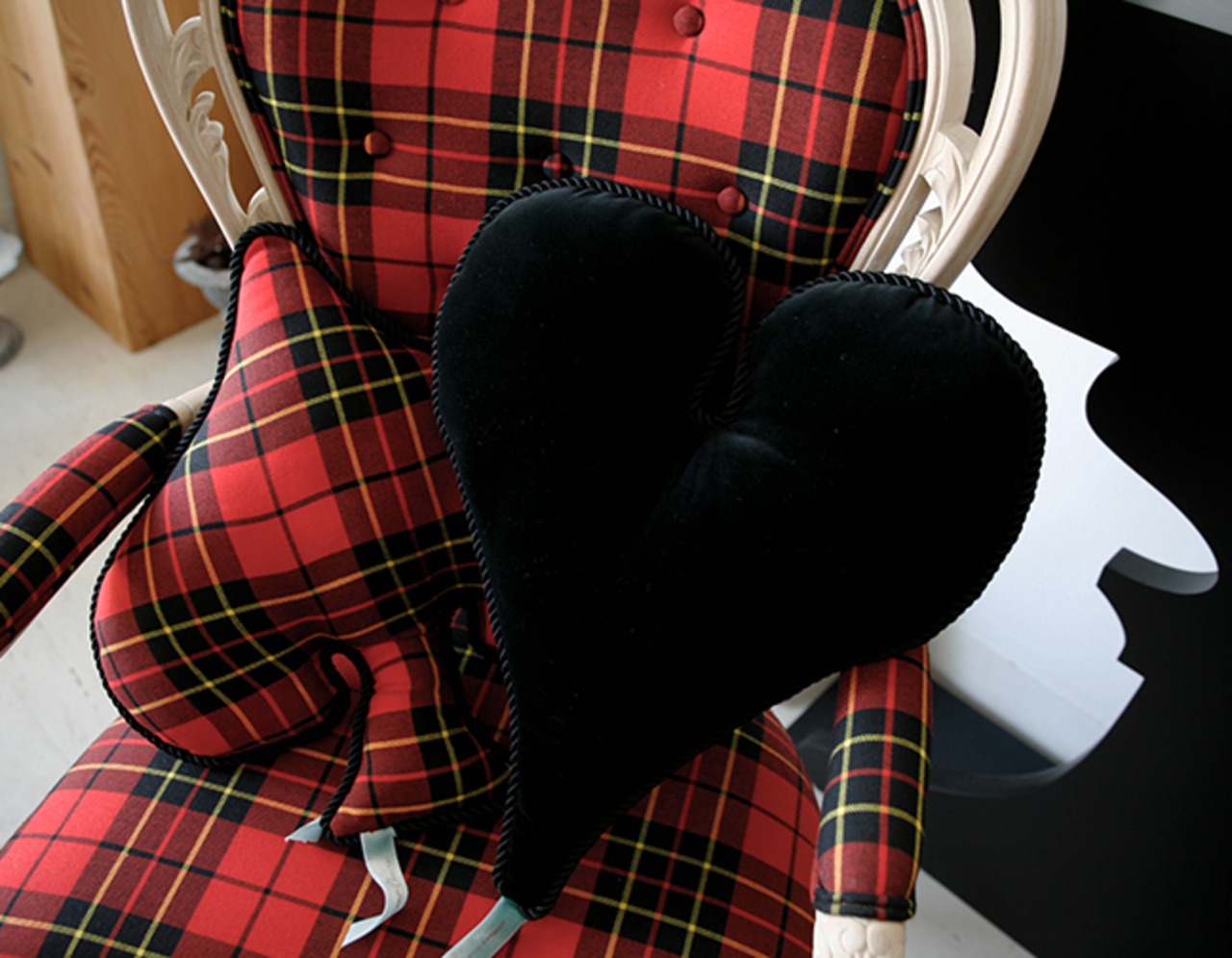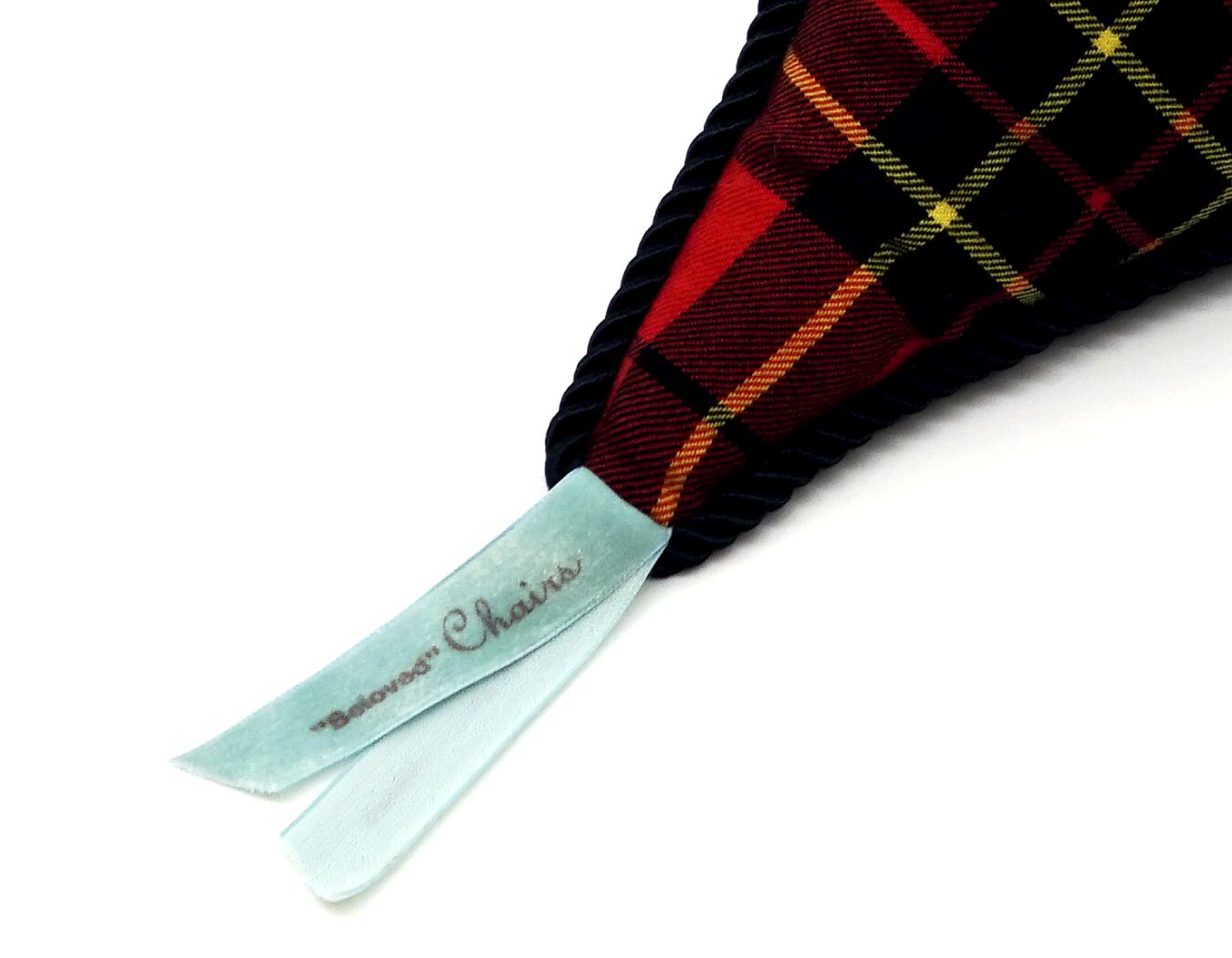 クラシックなディティールに拘ったトランプのクッションです。タータンチェックの伝統柄「BRODIE」をビラブド用にオーダーメイドした生地で、裏面は黒のベルベットになります。